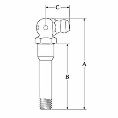M6 x 1 90° Hydraulic Grease Fitting. 30mm Long.